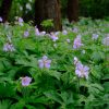 Een Amerikaanse ooievaarsbek met fraaie paarse bloemen. Goed als bos- en moerasplant.